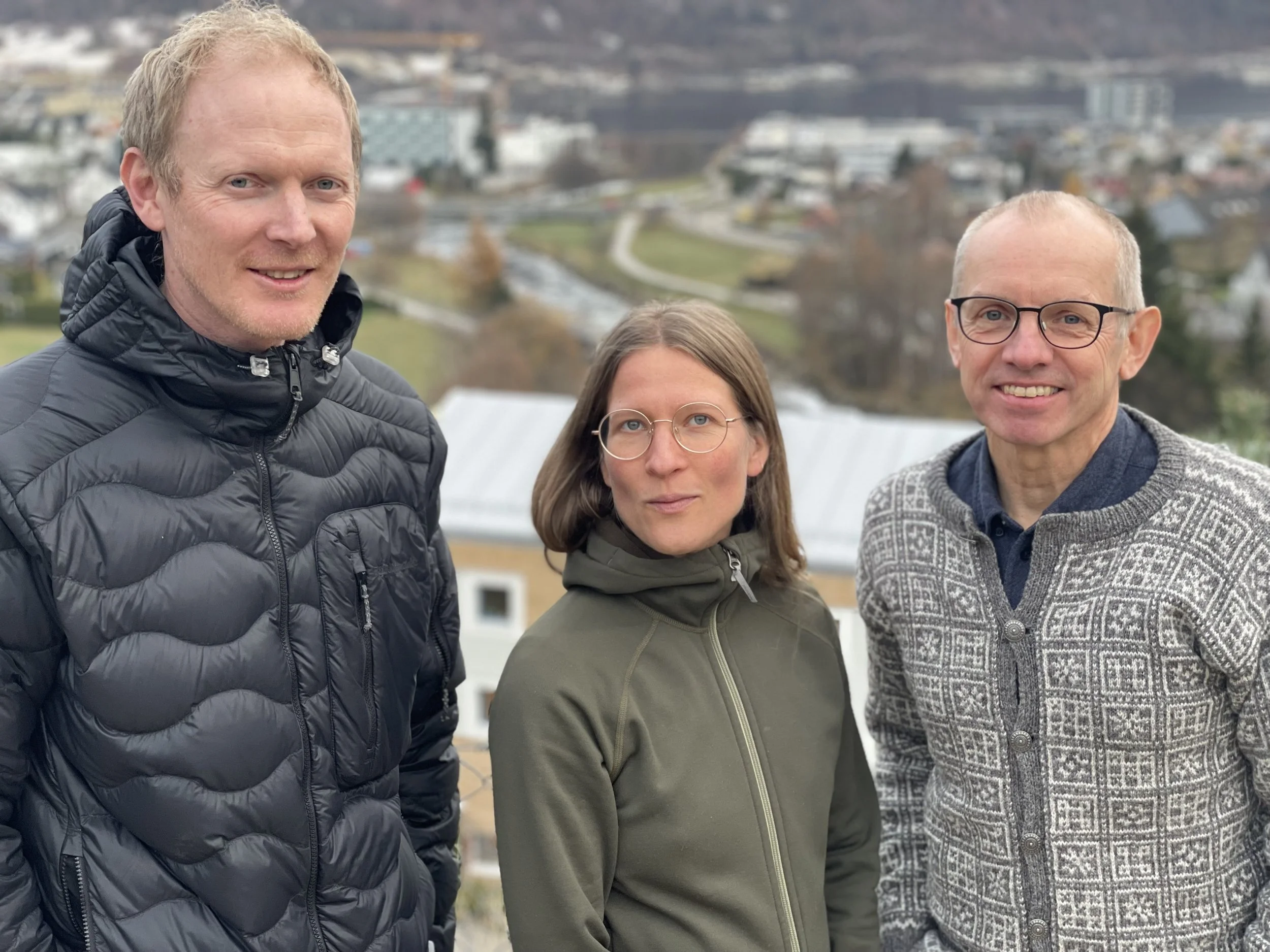 Prosjektleiaren i Integrate nature-based solutions er Irmelin Gram-Hanssen (i midten). Halvor Dannevig og Kyrre Groven er òg med i arbeidet.